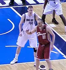 Shawn Paul Bradley (born March 22, 1972) is a German-American former professional basketball player who played center for the Philadelphia 76ers, New Jersey Nets, and Dallas Mavericks of the National Basketball Association (NBA). Nicknamed "the Stormin' Mormon",[1] Bradley is one of the tallest players in NBA history at 7 ft 6 in (2.29 m). Bradley was born in Landstuhl, West Germany, as his family was stationed at the U.S. military base medical facility, and grew up in Castle Dale, Utah.[2][3] He holds citizenship in both the United States and Germany.[4][5]