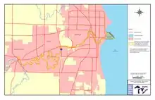 ![]() Riverfront in downtown Sheboygan near the river's mouth | |