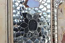Close up view of the building's mirror-work