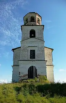 - Bogoslovsky Pogost which is the ensemble consisting of the wooden Church of Three Holy Hierarchs (1782) and the Chapel of St. Varlaam of Vaga (1821), both neglected[15]