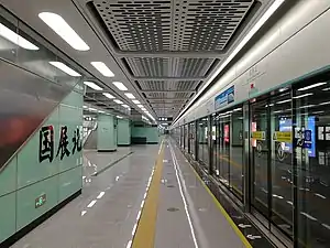 Shenzhen World North (Chinese: 国展北站; pinyin: Guózhǎn Běi Zhàn) station is an interchange station for Line 12 and Line 20 of Shenzhen Metro in Shenzhen, Guangdong, China. Line 20 platforms opened on 28 December 2021 and Line 12 platforms opened on 28 November 2022.[1][2] It is located in Bao'an District.