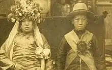 A tongyangxi and her child husband on their wedding day, Republican Era.