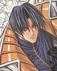Born in January 1853 in Tokyo Prefecture,[7] Shinomori Aoshi was raised a ninja of the Oniwabanshū, who worked for the Shogunate government during the Edo period. At the suggestion of Kashiwazaki Nenji (better known as Okina), Shinomori was given the position of Okashira at the age of fifteen, in time for the Oniwabanshou to defend Edo Castle.[7] As a member of the Oniwabanshuu, he helped to raise Makimachi Misao from childhood. Misao, who was his protegee developed a strong admiration and romantic feelings for him. Aoshi is a grandmaster and Okashira of the Oniwanbanshou shinobi. Aoshi's weapon of choice is a kodachi, a sword that is described in the series to act like a shield because its light weight makes it easy to block with. He originally used only one of these short swords for defense and relied mainly on kenpo for his offense, but later used a two-sworded style. Among several from his Kodachi nito Ryu, the Kaiten Kenbu Rokuren (回天剣舞・六連(かいてんけんぶ・ろくれん), "Spinning-Heavenly Sword-Dance Six-Series" or "The Dance Of The Wheeling Sword Six Successions") is the strongest.