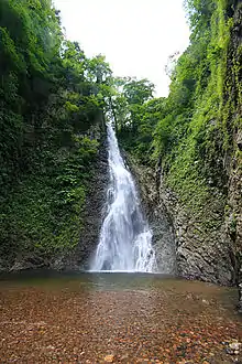 The World Heritage Site is located within the boundaries of multiple municipalities Ajigasawa, Fujisato, Fukaura, and Nishimeya. The Anmon no Taki waterfalls are in the western part of Nishimeya, about 3.5 kilometres (2.2 mi) to the west of Miyama Lake.