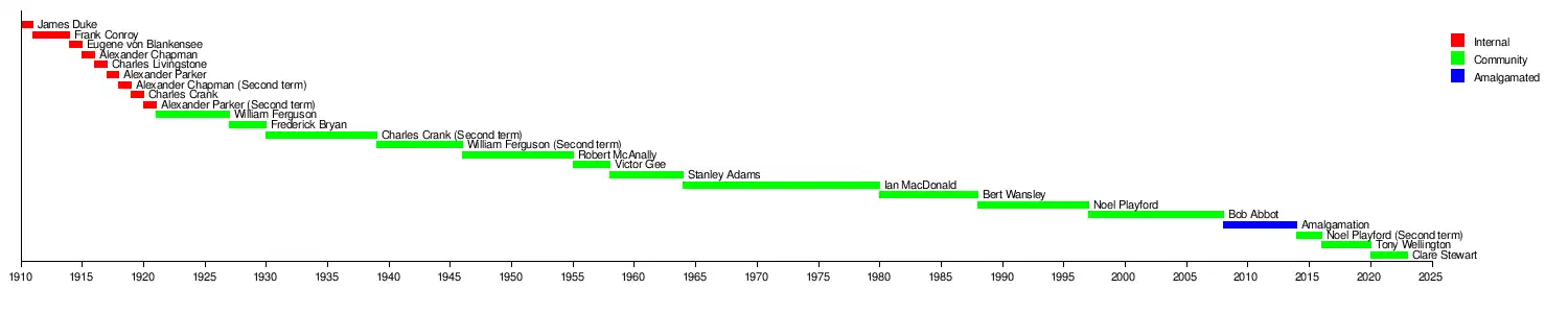| Frank Wilkie | 2014–present | Independent | Deputy Mayor | [26] |