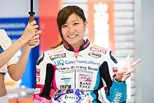 Shizuka Okazaki (岡崎 静夏, Okazaki Shizuka, born 12 June 1992)[1] is a Japanese motorcycle racer. In 2016, she became the first Japanese female rider to compete in a Grand Prix in 21 years.[2] She currently competes aboard a TSR3 Honda in the MFJ All-Japan Road Race J-GP3 Championship.