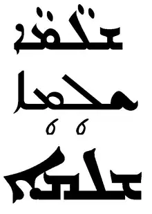 "Shlama/Shlomo in (top) Madnkhaya, (middle) Serto, and (bottom) Estrangela script."