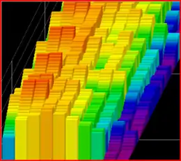 The short-time Fourier transform (STFT), is a Fourier-related transform used to determine the sinusoidal frequency and phase content of local sections of a signal as it changes over time.[1] In practice, the procedure for computing STFTs is to divide a longer time signal into shorter segments of equal length and then compute the Fourier transform separately on each shorter segment. This reveals the Fourier spectrum on each shorter segment. One then usually plots the changing spectra as a function of time, known as a spectrogram or waterfall plot, such as commonly used in software defined radio (SDR) based spectrum displays. Full bandwidth displays covering the whole range of an SDR commonly use fast Fourier transforms (FFTs) with 2^24 points on desktop computers.