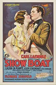 Show Boat is a 1929 American pre-Code romantic drama film based on the 1926 novel Show Boat by Edna Ferber. The film initially did not use the 1927 stage musical of the same name as a source, but scenes were later added into the film incorporating two of the songs from the musical as well as other songs. This version was released by Universal in two editions, one a silent film for movie theatres still not equipped for sound, and one a part-talkie with a sound prologue.