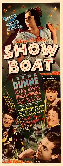 Show Boat is a 1936 American romantic musical film directed by James Whale, based on the 1927 musical of the same name by Jerome Kern and Oscar Hammerstein II, which in turn was adapted from the 1926 novel of the same name by Edna Ferber.[2]