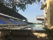 This Aquatics centre contains two 50 x 25m swimming pools, with a seating capacity of 3500. There are also changing rooms available. Seating and lounges are for VIPs. For public usage the pool timings are 6:00 AM – 9:00AM and 3:00 PM – 6:00 PM from Monday to Saturday.