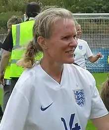 In 1985, she earned a senior cap for Wales, before switching to represent England.[4] Williams played for both England and Wales at international level.[5] She was a non-playing member of England's 1995 FIFA Women's World Cup squad.