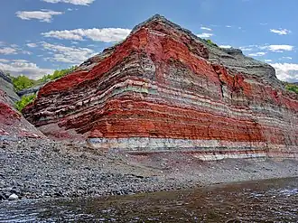 The main source of rock in this formation is basalt, but both mafic and felsic rocks are present, so this formation is officially called a Flood Basalt Province. The inclusion of mafic and felsic rock indicates multiple other eruptions that occurred and coincided with the one-million-year-long set of eruptions that created the majority of the basaltic layers. The traps are divided into sections based on their chemical, stratigraphical, and petrographical composition.[5]