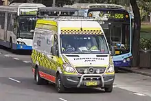 Other coloured chequered patterns may be used to denote other emergency services and particular usage varies from state to state. For example, in New South Wales the Ambulance Service uses red and white chequers on ambulances and paramedic's uniforms, while the State Emergency Service uses orange and white Sillitoe tartan. St John Ambulance uses a white and green pattern on their vehicles and operational uniforms in both South Australia and Victoria. In New South Wales the Roads & Maritime Services Traffic Emergency Patrol have adopted a yellow and purple Sillitoe tartan[4] whereas the Victorian counterpart, VicRoads have adopted a green and white variant.[5]