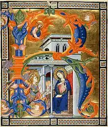 - folio 38: The Nativity and the Annuciation to the Shepherds in an Initial P (Morgan Library & Museum, MS M.653, no. 1 (I.8))[50][51]