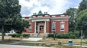 At a town meeting in 1903 the voters decided to accept this gift. The acceptance included a provision that the control and government of the library and the real estate be permanently vested in an eight-member board of trustees, three to be elected and five to be appointed. Fairfield appointed the first five to be Charles J. Batchellor, Winfield S. Schuster, Walter B. Fairfield, Aaron F. Jones, and James W. Wixtead.