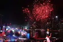 Fireworks over Marina Bay during the closing ceremonies.