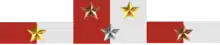 Ribbons are worn without the orders, decorations and medals. They are worn immediately above the left chest pocket flap. The latest rewarded ribbon is worn on the wearer's right (nearer to the heart) and in the top row when more than one row is worn. Ribbons are worn to a maximum of three in a row. Ribbons in excess of this number are to be worn centrally above the completed row.