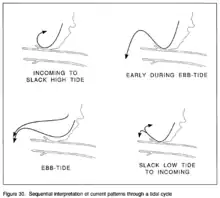 In general, accretion of the shoreline took place adjacent to the jetties following their construction, both to the north and south. This accretion resulted mainly from the embayment formed between the jetty and the pre-jetty shoreline, the embayment becoming filled until the shoreline is straight and again in equilibrium with the waves such that there is a zero net sand drift.[24]