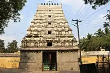 The temple complex covers around one acre and can be entered through a seven-tiered gopuram, the main gateway. The temple has a number of shrines, with those of Sivalokanathar and his consort Soundaryanayagi, being the most prominent. All the shrines of the temple are enclosed in large concentric rectangular granite walls.