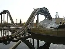 Six Flags New Orleans is an abandoned theme park located near the intersection of Interstate 10 and Interstate 510 in New Orleans.[4] It first opened as Jazzland in 2000, and a leasing agreement was established with Six Flags in 2002 following the previous operator's bankruptcy proceedings.[5] Six Flags invested $20 million in upgrades, and the park reopened as Six Flags New Orleans in 2003. Following the substantial damage caused by Hurricane Katrina in 2005, the park remained closed to the public in order to make efforts to repair and reopen it. However, in 2009, the city of New Orleans ended its 75-year lease with Six Flags, and the park consequently became permanently closed due to the extreme damage that was too severe to be repaired.[6]