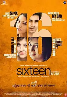 Sixteen is a 2013 Hindi coming-of-age drama film directed by Raj Purohit and starring debutants Izabelle Leite, Wamiqa Gabbi, Mehak Manwani and Mathew in the lead roles, while Rohan Mehra, Keith Sequeira and Zakir Hussain play supporting roles.