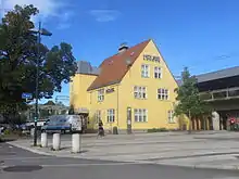Skøyen Station was one of five original stations on the Drammen Line, which opened on 7 October 1872. The line was originally narrow gauge, single track and lot electrified.[1] The station building was designed by Georg Andreas Bull in Swiss chalet style. It was located on the east of Drammensveien.[2] The original building has since been demolished.[1]
