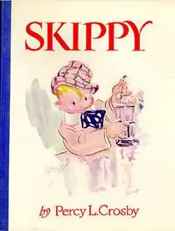 Skippy is an American comic strip written and drawn by Percy Crosby that was published from 1923 to 1945. A highly popular, acclaimed and influential feature about rambunctious fifth-grader Skippy Skinner, his friends and his enemies, it was adapted into movies, a novel and a radio show. It was commemorated on a 1997 U.S. Postal Service stamp and was the basis for a wide range of merchandising—although perhaps the most well-known product bearing the Skippy name, Skippy peanut butter, used the name without Crosby's authorization, leading to a protracted trademark conflict.