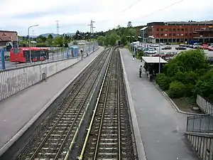 Skullerud (ⓘ) is a station on Østensjø Line of the Oslo Metro, located in the Østensjø borough, between Bogerud and Mortensrud. Since its opening 26 November 1967, it was the end station of the line until Østensjøbanen was extended to Mortensrud in 1997. The area around Skullerud station has a mixture of residential areas and businesses, including the former centers for Norsk Data and Tandberg Radio. The station is also a node for several bus lines.