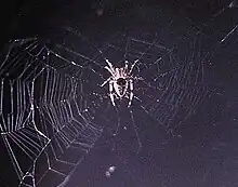 Spider webs were spun by two female European garden spiders (cross spiders) called Arabella and Anita, as part of an experiment on Skylab 3.[13] The aim of the experiment was to test whether the two spiders would spin webs in space, and, if so, whether these webs would be the same as those that spiders produced on Earth. The experiment was a student project of Judy Miles of Lexington, Massachusetts.[13]