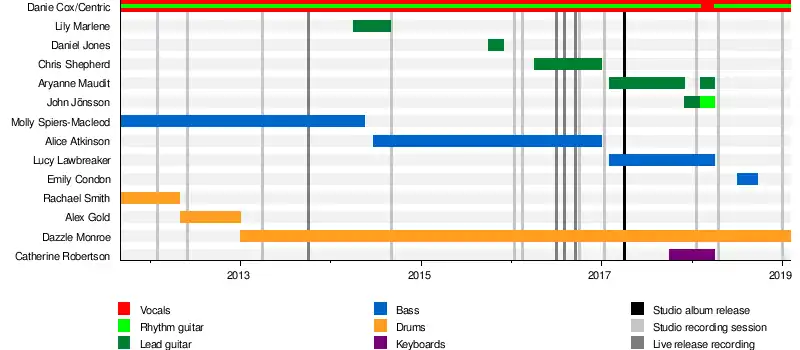 • Wendy Solomon – bass as "Jem Lea" November 2018 - present