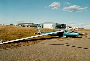 The 1965 World Championships saw only modest success for the Darts: a Dart 15 finished 5th in the Standard Class event and the Dart 17 came 7th in the Open Class.[10] 82 complete Darts of both spans are known to have been built. Overall, rather more of the large-span Darts were made.[11] One had removable wing tips, so it could fly in either class.[11] Two special Dart 15s, designated Dart 15W were produced for the Standard Class at the 1968 World Championships with wings using a new aerofoil section and a revised canopy.[4] After the competition, in which they were not highly placed,[12] their wings were extended to 17 m and they were redesignated Dart 17W; later fitted with the retractable undercarriage, they became 17WRs. Several Darts were built from kits in New Zealand and flew there.[11] Others were exported to Burma, Canada, Rhodesia,[11] Switzerland and the USA.[9]