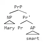 Some have taken this as evidence that this structure does not adequately portray the structure of a small clause, and that a better structure must include some intermediate projection that combines the subject and the predicate[1] which would assign a head to the constituent.