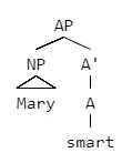 In this analysis, the small clause can be identified as a projection of the predicate (in this example, the predicate would be the 'smart' in 'Mary smart'). In this view, the specifier of the structure (in this case, the NP 'Mary') is the subject of the head[26] (in this case, the A 'smart'). This analysis builds on Chomsky's[27] model of phrase structure and is proposed by Stowell[28] and Contreras.[29]