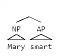 In this analysis, neither of the constituents determine the category, meaning that it is an exocentric construction. Some linguists believe that the label of this structure can be symmetrically determined by the constituents,[20][21] and others believe that this structure lacks a label altogether.[22] In order to indicate a predicative relationship between the subject (in this case, the NP Mary), and the predicate (AP smart), some have suggested a system of co-indexation, where the subject must c-command any predicate associated with it.[23]