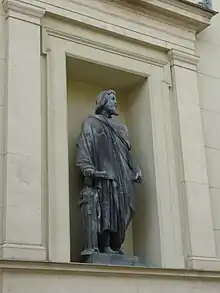 Statue of Smilis on the facade of the New Hermitage Building in St Petersburg, Russia