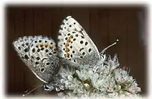 Smith's blue butterfly, Euphilotes enoptes smithi, is a subspecies of butterfly in the family Lycaenidae. This federally listed endangered subspecies of Euphilotes enoptes occurs in fragmented populations along the Central Coast of California, primarily associated with sand dune habitat in one case with a dune-based Maritime Coast Range Ponderosa Pine forest in the Carbonera Creek watershed in Santa Cruz County.[1] The range of E. e. smithi is from Monterey Bay south to Punta Gorda.