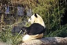 The zoo's Giant Panda Habitat features three outdoor areas with animal enrichment, as well as an indoor area with a rocky outcrop, a waterfall, and viewing areas. The zoo's pandas, named Mei Xiang and Tian Tian, are on loan from the China Wildlife Conservation Association, and will live at the zoo until 2023.[30] They are the focus of a research, conservation, and breeding program that aims to preserve the species. The pandas live at the David M. Rubenstein Giant Panda Habitat, a state-of-the-art indoor and outdoor exhibit. The exhibit is designed to replicate the rocky, lush terrain of the pandas' natural habitat.[8]