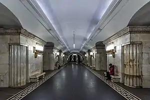 Smolenskaya (Russian: Смоленская) is a station on the Arbatsko–Pokrovskaya line of the Moscow Metro. It was built in 1953 to replace an older station of the same name, though that one was later reopened as part of the Filyovskaya line. The two stations are not connected.