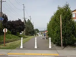 The Snohomish County Centennial Trail is a 30-mile-long (48 km) rail trail in Snohomish County, Washington, connecting the cities of Snohomish, Lake Stevens, and Arlington to Skagit County along the corridor of Washington State Route 9.[1] The trail, administered by Snohomish County Parks and Recreation, is on the former right-of-way of the Seattle, Lake Shore and Eastern Railway and comprises a 10-foot-wide (3.0 m) non-motorized trail and a 6-foot-wide (1.8 m) equestrian trail.[2] The first segment of the corridor was opened in 1989, the centennial of the statehood of Washington, and the final segment between Arlington and the Skagit County line was opened in 2013.[3]