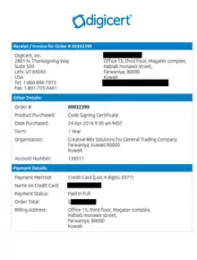 | DigiCert Certification | N/A |