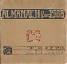 To promote their eclecticism the group published a "manifesto" called "Almanach pour 1908" which included literary and graphic works by artists typically associated with the new generation of l'École de Rouen, as those of well-known Parisian artists.[5] This high quality catalog was published in an edition of 450.[1][2]