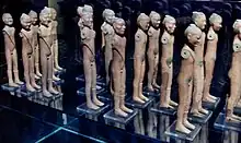 In the early Western Han, imperial relatives and some military officers who had served Emperor Gaozu were made kings who ruled over large semi-autonomous fiefs, but once the non-related kings had died off, an imperial edict outlawed all non-Liu family members from becoming kings.[10] The emperor's brothers, paternal cousins, brother's sons, and emperor's sons—excluding the heir apparent—were made kings.[10] The emperor's sisters and daughters were made princesses with fiefs.[11] Although the central government eventually stripped away the political power of the kings and appointed their administrative staffs, kings still had a right to collect a portion of the taxes in their territory as personal income and enjoyed a social status that ranked just below the emperor.[12] Each king had a son designated to be heir apparent, while his other sons and brothers were given the rank of marquess and ruled over small marquessates where a portion of the taxes went to their private purse.[13] Although kings and marquesses enjoyed many privileges, the imperial court was at times aggressive towards them to check their power. Starting with Emperor Gaozu's reign, thousands of noble families, including those from the royal houses of Qi, Chu, Yan, Zhao, Han, and Wei from the Warring States period, were forcibly moved to the vicinity of the capital Chang'an.[14] In the first half of Western Han, resettlement could also be imposed on powerful and wealthy officials as well as individuals who owned property worth more than a million cash.[14]