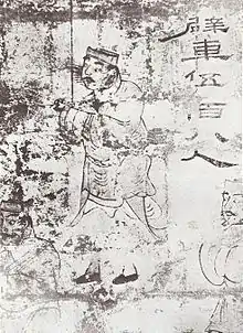 The position of regent (officially known as General-in-Chief 大將軍) was created during Emperor Wu's reign (r. 141–87 BCE) when he appointed three officials to form a triumvirate regency over the central government while the child Emperor Zhao (r. 87–74 BCE) sat on the throne.[15] Regents were often relatives-in-law to the emperor through his empress's family, but they could also be men of lowly means who depended on the emperor's favor to advance their position at court.[16] Eunuchs who maintained the harem of the palace could also gain a similar level of power. They often came from the middle class and had links to trade.[17] In the Western Han, there are only a handful of examples where eunuchs rose to power since the official bureaucracy was strong enough to suppress them.[18] After the eunuch Shi Xian (石顯) became the Prefect of the Palace Masters of Writing (中尚書), Emperor Yuan (r. 48–33 BCE) relinquished much of his authority to him, so that he was allowed to make vital policy decisions and was respected by officials.[19] However, Shi Xian was expelled from office once Emperor Cheng (33–7 BCE) took the throne.[20] No palace eunuch would obtain comparable authority again until after 92 CE, when the eunuchs led by Zheng Zhong (d. 107 CE) sided with Emperor He (r. 88–105 CE) in a coup to overthrow the Dou 竇 clan of the empress dowager.[21] Officials complained when eunuchs like Sun Cheng (d. 132 CE) were awarded by Emperor Shun (r. 125–144 CE) with marquessates, yet after the year 135 CE the eunuchs were given legal authority to pass on fiefs to adopted sons.[22] Although Emperor Ling (r. 168–189 CE) relinquished a great deal of authority to eunuchs Zhao Zhong (d. 189 CE) and Zhang Rang (d. 189 CE), the eunuchs were slaughtered in 189 CE when Yuan Shao (d. 202 CE) besieged and stormed the palaces of Luoyang.[23]