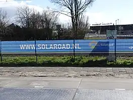 The SolaRoad was the world's first bike path made from solar panels, and was a prototype project testing the feasibility of various proposals for smart highways. The 72-metre (236 ft) path opened in the week of 21 October 2014,[3] and was designed by a consortium of organizations, which built the pathway in Krommenie, Netherlands.[4][5]