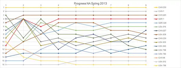 | 10 | David Baum | Cate Muller Brian Lennie | USA 845 | 4 | 4 | 3 | 3 | 13 | 13 | 13 | 13 | 12 | 12 | 11 | 11 | 7 | 7 | 77 | 63 | |||