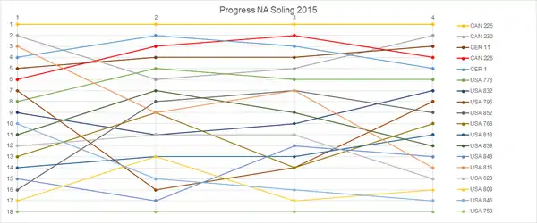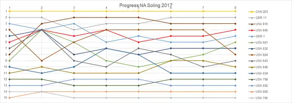 | 15 | Dick Kinney | Mary Cimrmancic Jim Wend | USA 785 | 14 | 14 | DNS | 16 | 15 | 15 | 15 | 15 | 14 | 14 | 15 | 15 | 13 | 13 | 118 | 102 | |||