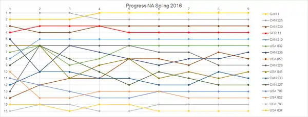 | 7 | Charlie Kamps | Jon Bailey Vytas Kasniunas | USA 832 | 5 | 5 | 7 | 7 | 8 | 8 | 8 | 8 | 2 | 2 | 9 | 9 | 4 | 4 | 52 | 43 | |||