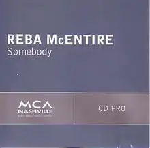 "Somebody" is a country music song written by Dave Berg, Sam Tate, and Annie Tate. It was initially recorded by American country music singer Mark Wills for his 2001 studio album Loving Every Minute. Reba McEntire later recorded the same song for her 2003 album Room to Breathe, releasing it as that album's second single in January 2004. By August of that year, McEntire's version had reached the top of the Billboard Hot Country Singles & Tracks (now Hot Country Songs) charts, becoming her 22nd number hit of her career and her first since "If You See Him/If You See Her" with Brooks & Dunn in 1998.