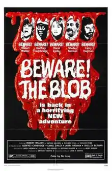 Beware! The Blob (also known as Beware the Blob, Son of Blob, The Blob II or The Blob Returns) is a 1972 American independent science fiction comedy horror film directed by Larry Hagman. It is a sequel to The Blob (1958). The screenplay was penned by Anthony Harris and Jack Woods III, based on a story by Jack H. Harris and Richard Clair. The film originally earned a PG rating from the MPAA, though it is now unrated.[1] It is the second film in The Blob film series.